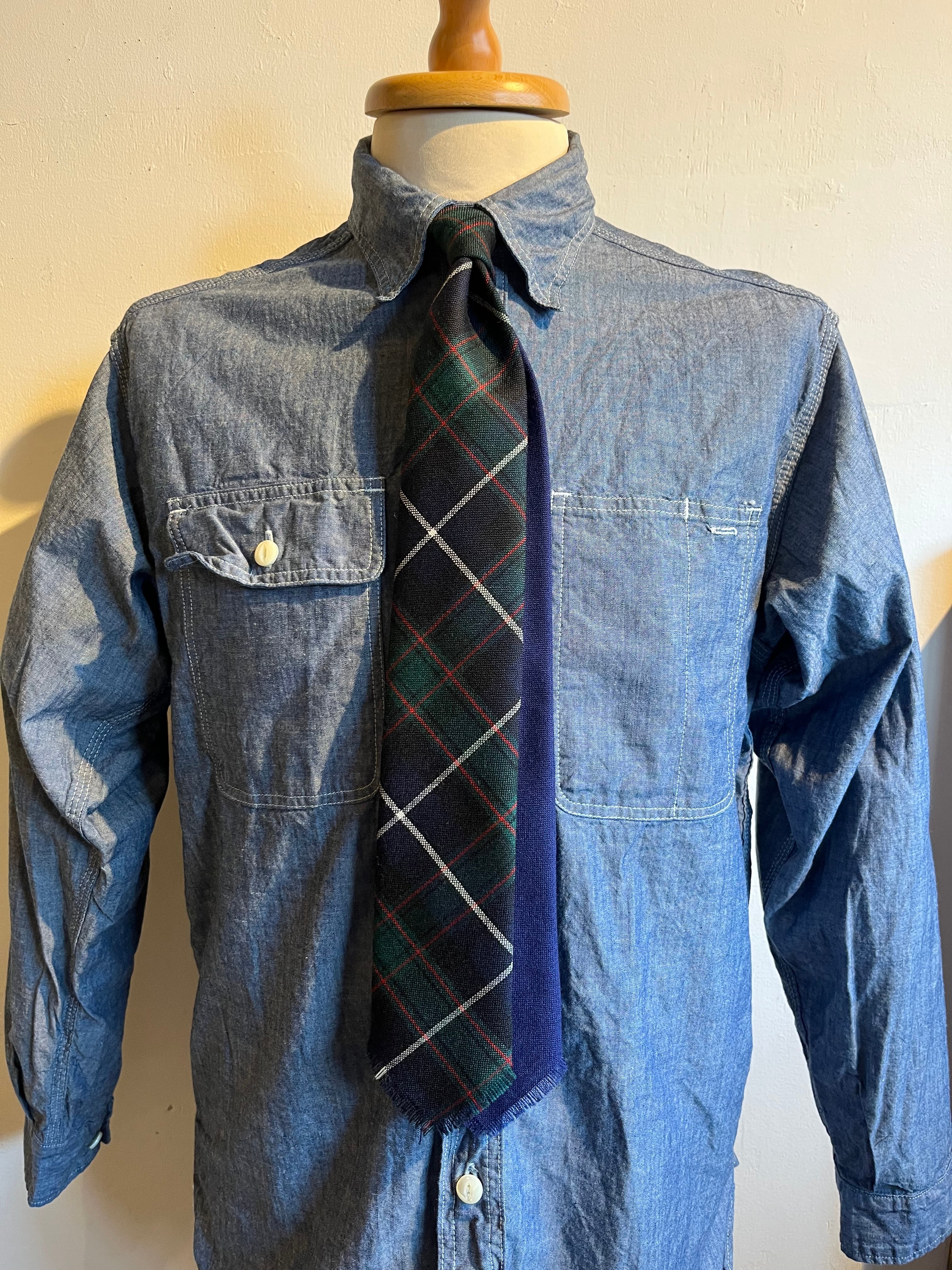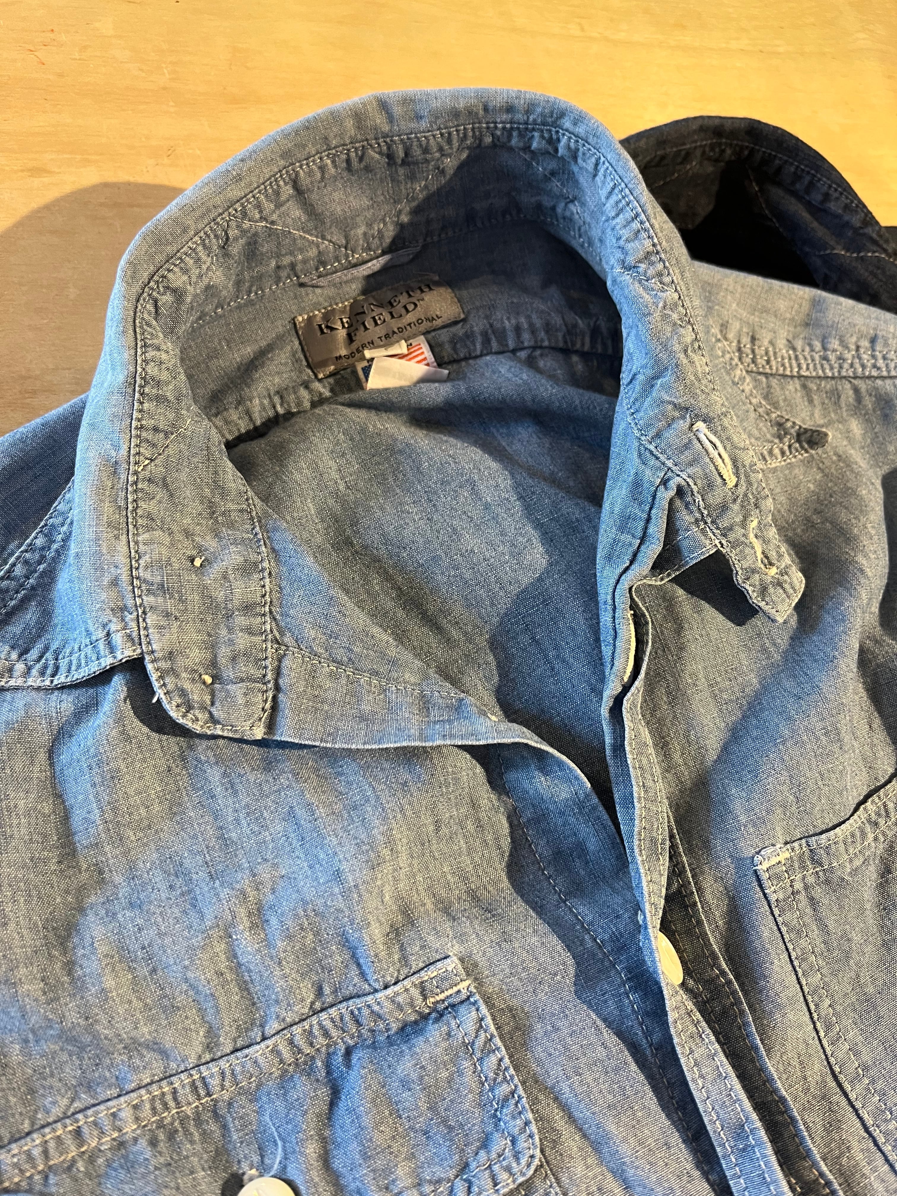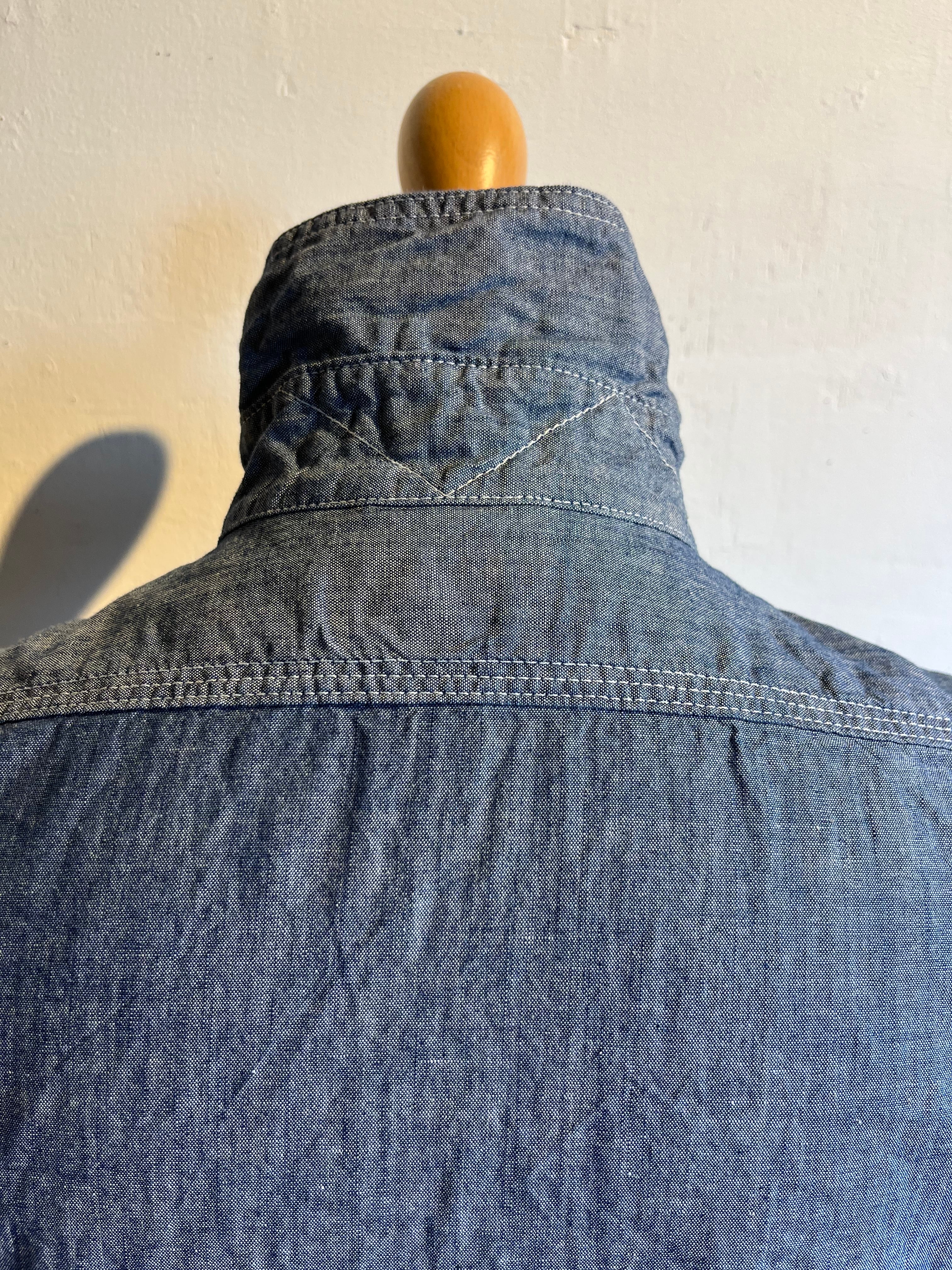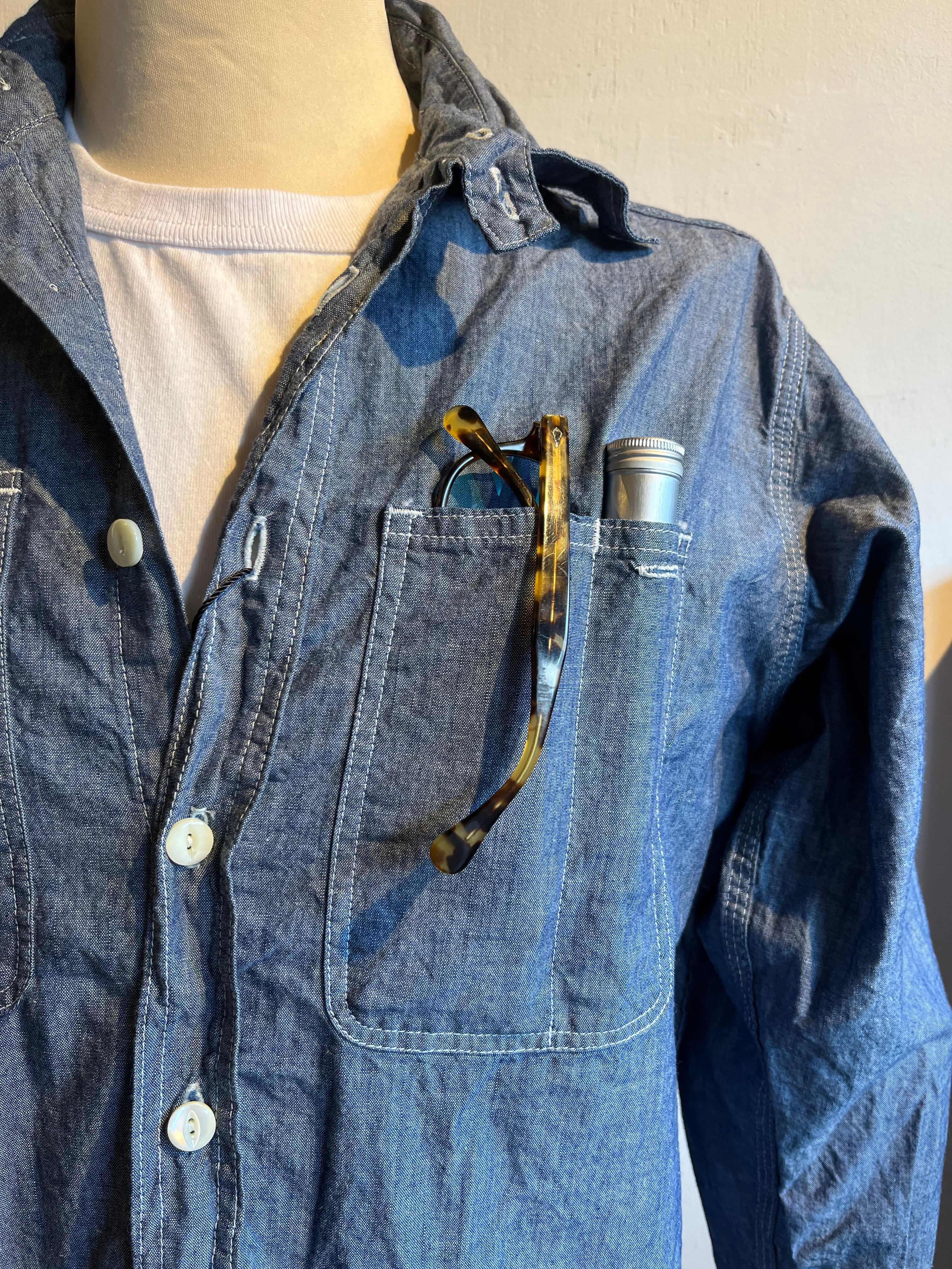 オーセンティックなシャンブレーシャツのポケットはサングラスやシガーチューブ(葉巻)が収まります。