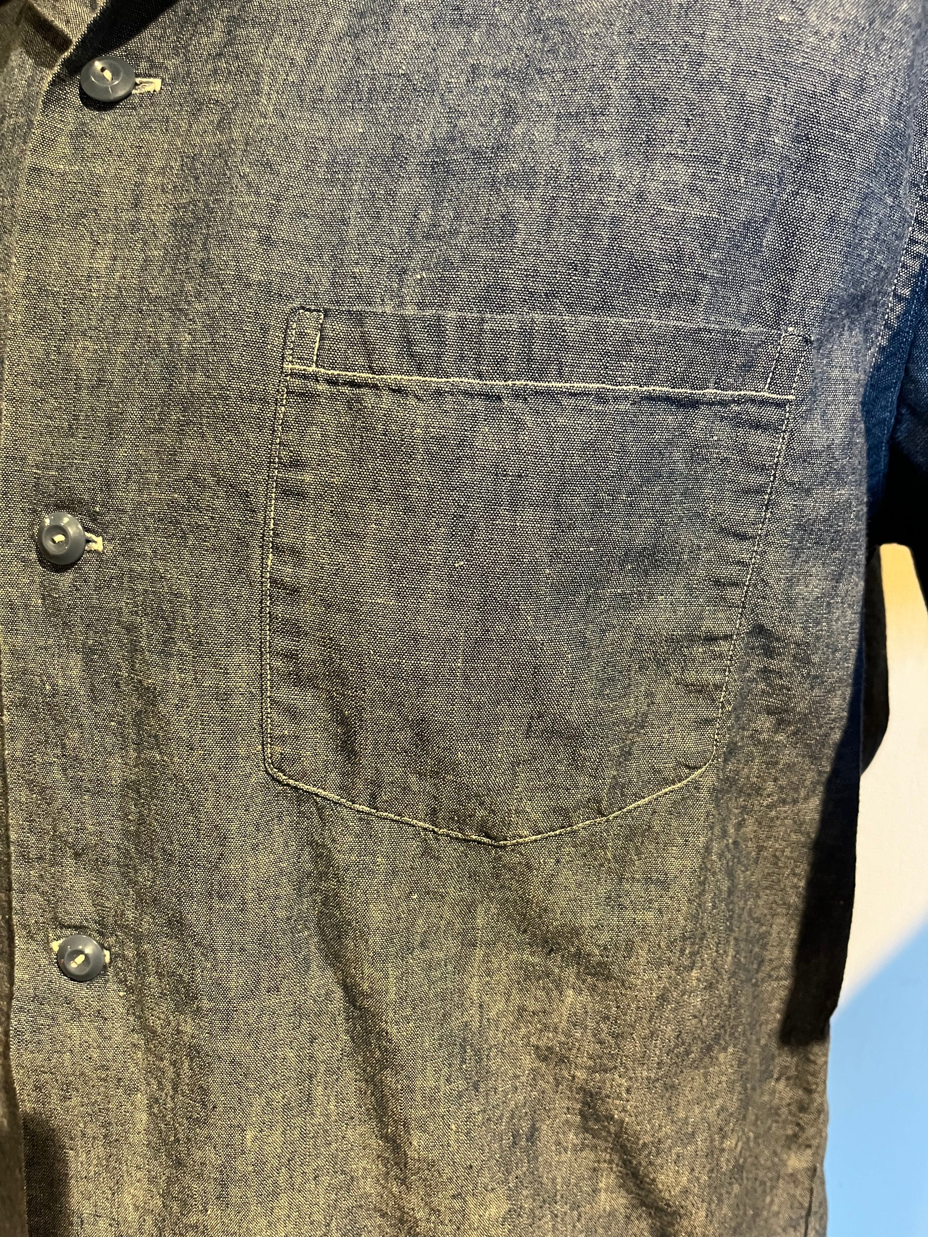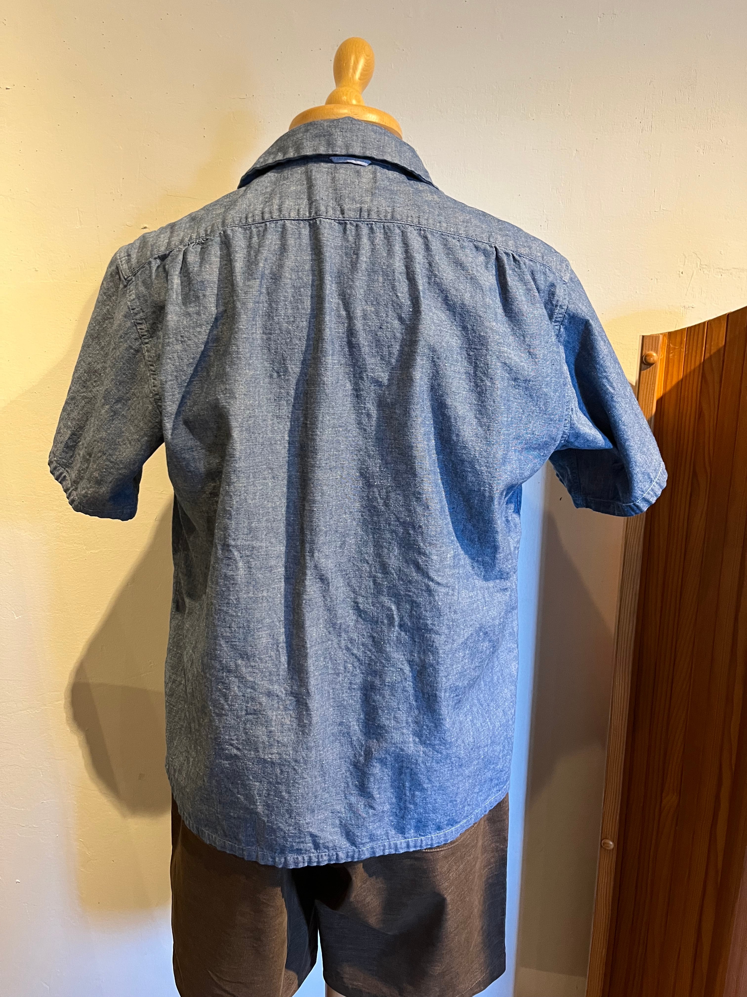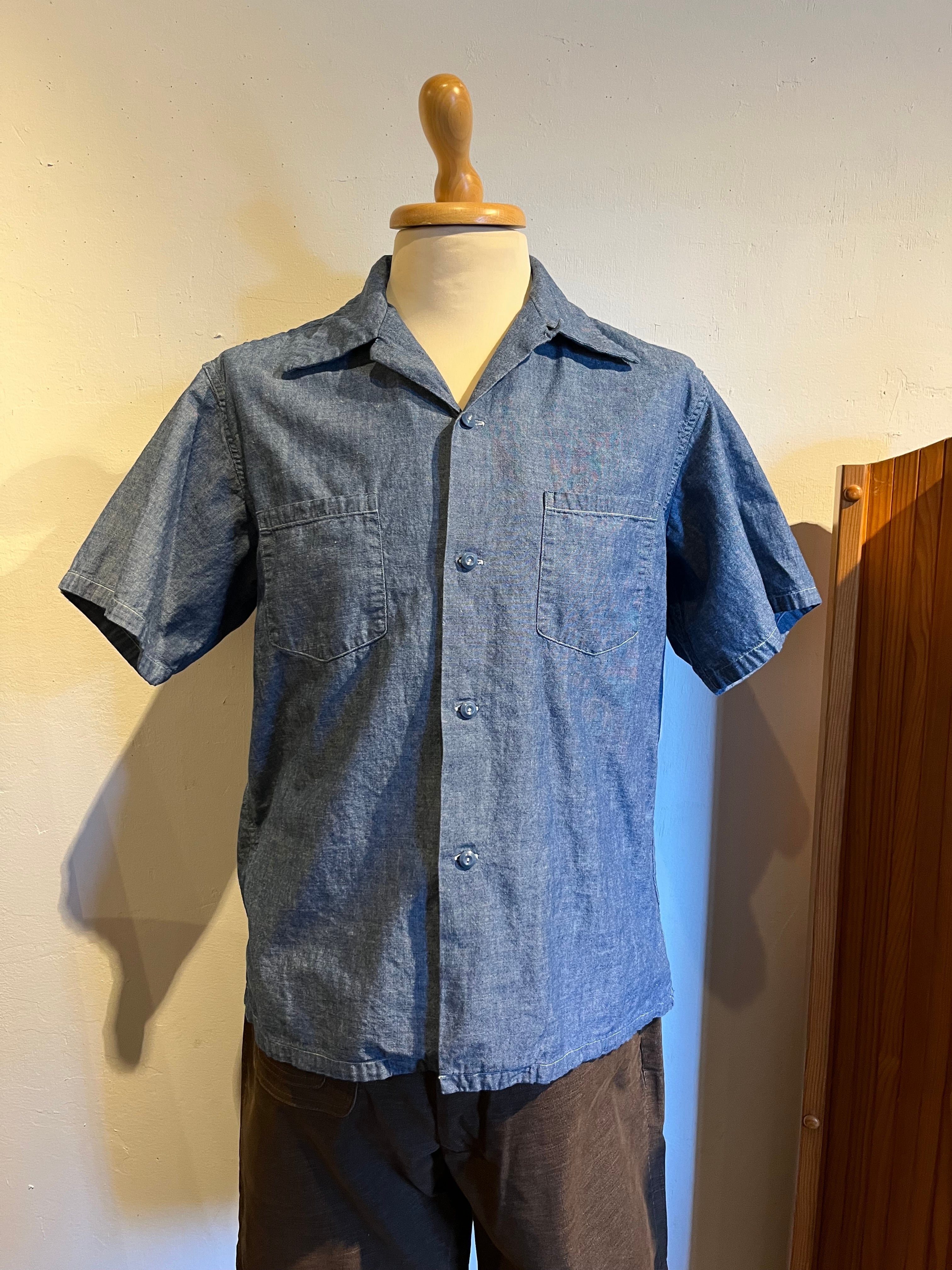 シャツ(Hercules社)をベースに作製していただきました。ややロングポイント気味のオープンカラー(開襟)と、やや下に取り付けられた両胸のポケットが50年代の雰囲気を色濃く反映しています。